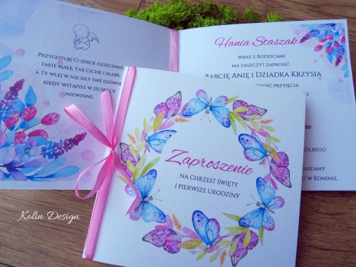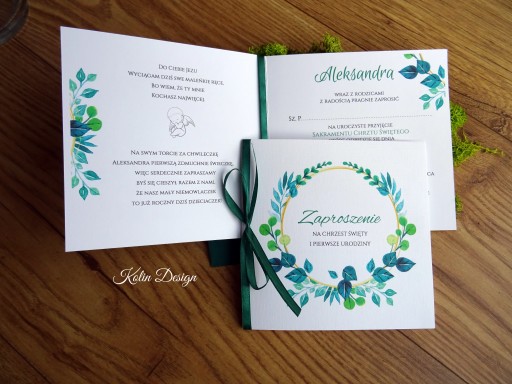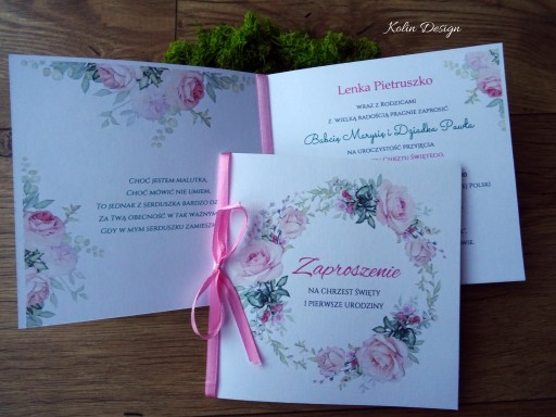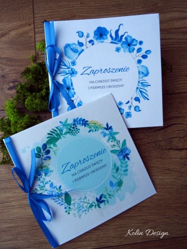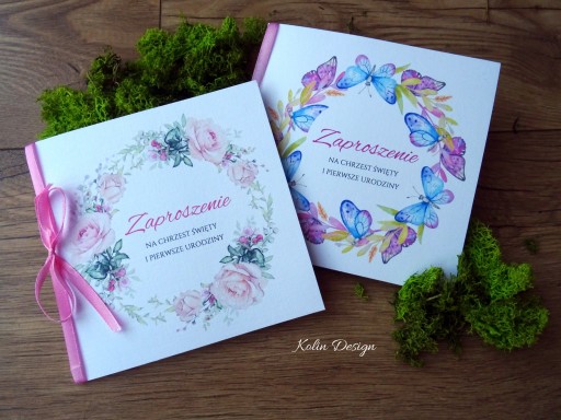 - od 8szt. personalizację kościoła, miejsca przyjęcia, datę, godzinę (Zamówienie poniżej 8szt. - miejsca, data, godzina itd. zostaną wykropkowane w całości, wówczas proszę podać tylko imię dziecka oraz kolor wianka lub można wykupić opcję projekt)