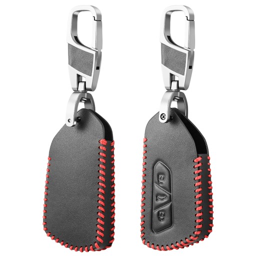 W ofercie posiadamy ręcznie szyte etui, odpowiadające kluczykom wszystkich marek i modeli samochodów osobowych i nie tylko. Kluczyki zostały wykonane z naturalnej skóry w kolorze czarnym, obszywanej grubą, czerwoną nicią.Do każdego etui przymocowany jest praktyczny stalowy karabińczyk, lakierowany na tytanowy kolor.