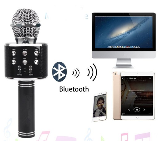 mikrofon z dwoma głośnikami, umożliwia nagrywanie oraz odsłuchiwanie piosenek; łączy się z urządzeniami zewnętrznymi (telefon, tablet, telewizor SMART z systemem operacyjnym ANDROID lub IOS) poprzez Bluetooth 4.0 lub kabel. Po sparowaniu dźwięk będzie odtwarzany w głośnikach mikrofonu. W urządzeniu trzeba włączyć muzykę, aplikację karaoke lub filmik na YouTube, wówczas w głośnikach usłyszymy muzykę, a sparowane urządzenie wyświetli tekst. Mikrofon świetnie poradzi sobie również w nagrywaniu wywiadów, podcastów radiowych, streamowaniu i wielu innych sytuacjach.