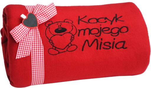 - przyjemny w dotyku, delikatny, cienki kocyk polarowy, kolor ciemno-czerwony, rozmiar 130x170 cm z haftem do wyboru na bazie tych, które prezentujemy,
