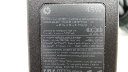 Oryginalny zasilacz USB-C o mocy 45W do laptopów HP