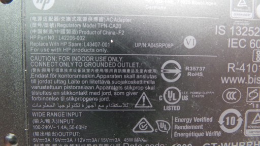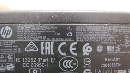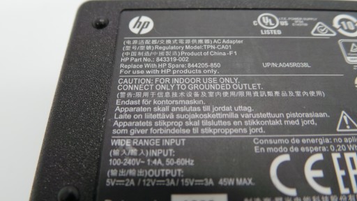 Оригинальный блок питания HP USB-C 45 Вт, 5 В/12 В/15 В, 3 А FV