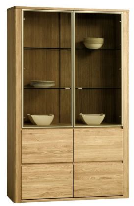 Witryna Orlando to model o dwóch szklanych i dwóch drewnianych drzwiach. Za szklanymi drzwiczkami możemy wyeksponować ulubione dekoracje czy też przedmioty użytku codziennego. Witryna Orlando to połączenie niezwykłej estetyki, wysokiej jakości wykonania i funkcjonalności. Mebel ten jest propozycją dla osób, którym zależy na dobrej jakości, ale także na aspektach wizualnych i dbałości o detale. Prosty kształt mebla w połączeniu z nowoczesnymi praktycznymi szufladami tworzy ciekawy minimalistyczny model witryny.