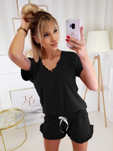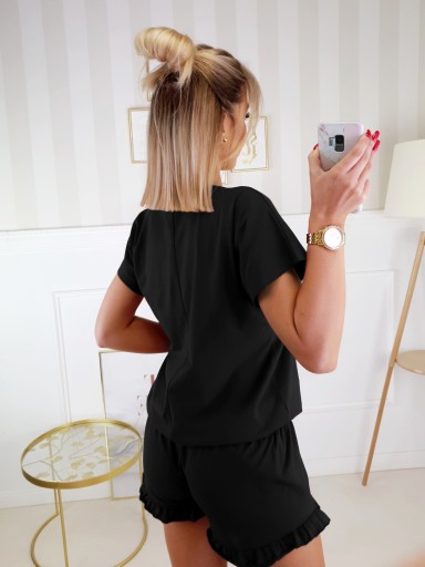 W komplecie bluzka z krótkim rękawem oraz szorty.