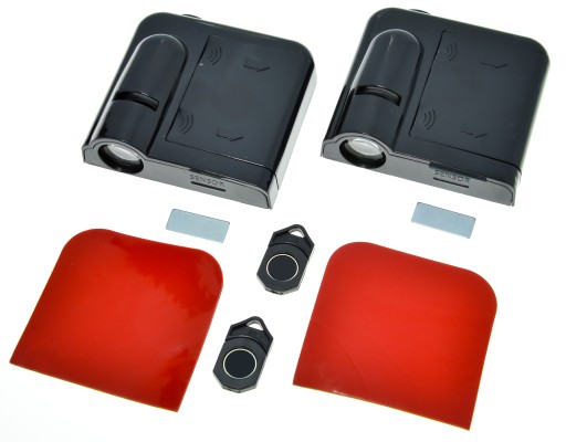 Cena dotyczy kompletnego zestawu dwóch rzutników LED z wybranym logo wraz taśmą montażową oraz magnesami. Zestaw nie zawiera baterii AAA
