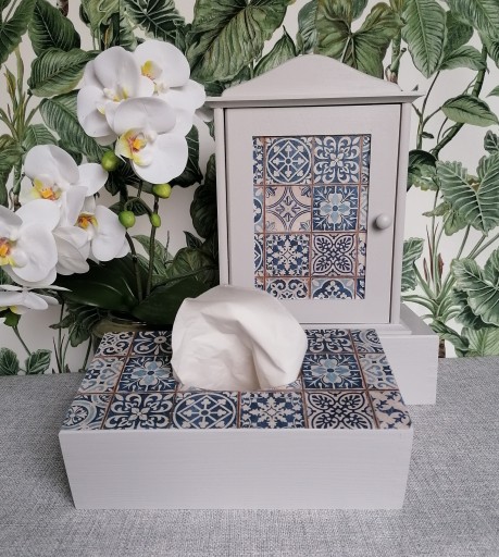 Dodatkowo możesz dokupić do kompletu szafkę na klucze, utrzymaną w tej samej kolorystyce i takim samym motywem portugalskich kafelek.
