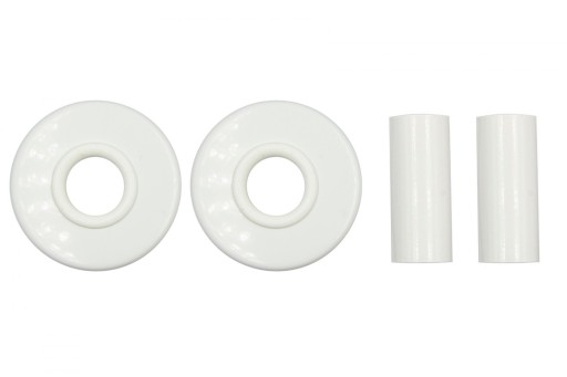 Zestaw rozet i tulei osłonowych do maskowania przyłączy grzejników. Zestaw można zastosować do rur pex 16 mm i miedzianych o średnicy 15 mm.