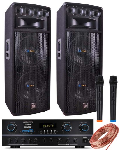 W ZESTAWIE DODATKOWO WZMACNIACZ, 2 MIKROFONY BEZPRZEWODOWE ORAZ OKABLOWANIE