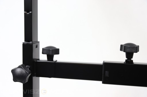 Regulowana płynnie jest również szerokość statywu w zakresie od 56 do 90 cm. Wielkość klawiatury nie ma już więc znaczenia, statyw doskonale nadaje się do długich pianin 88 klawiszy jak i mniejszych syntów 49.