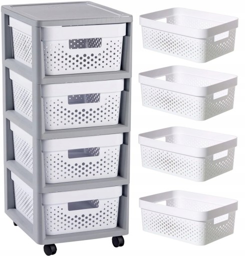 REGAŁ KOMODA SZAFKA PÓŁKA KOSZE 4X11L KÓŁKA KETER
