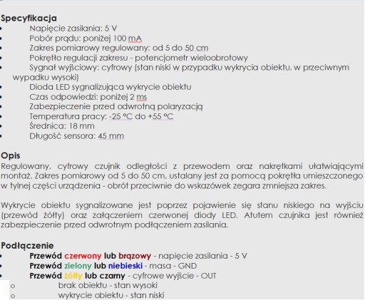 - napięcie zasilania: 5V