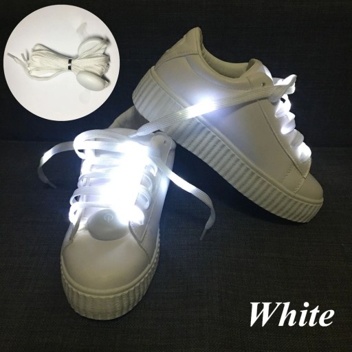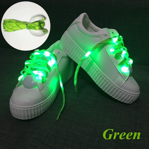 Świecące, płaskie sznurowadła do butów.