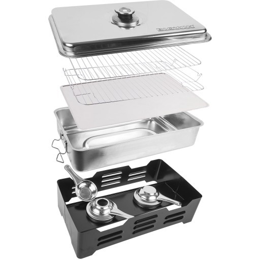 Uniwersalna domowa wędzarnia z głęboką brytfanną, wykonana z wysokiej jakości stali nierdzewnej. Dzięki dwóm rusztom i dwóm palnikom jest idealna do przygotowywania pysznych dań dla całej rodziny. Pozwala szybko i bez trudu uwędzić drób i inne ulubione rodzaje mięs, ryby oraz sery.