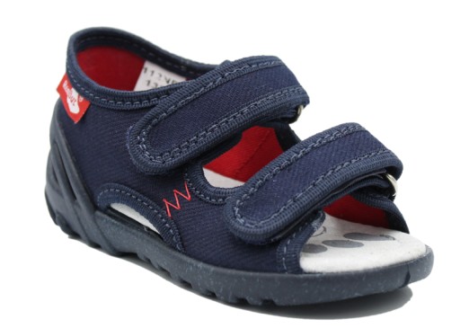 Sandałki tekstylne firmy Ren But wykonane z materiału tekstylnego.