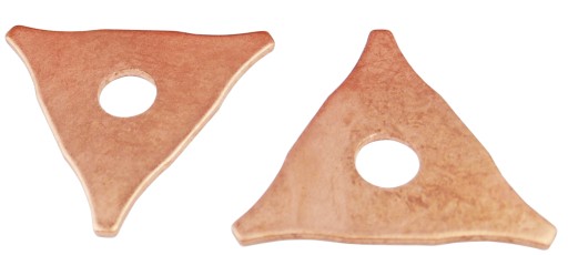 ☑️ Trójkąty wyposażone w powłokę miedziowaną cechują się specjalnym składem chemicznym pozwalającym na łatwe przygrzanie do karoserii. Skutkiem tego jest brak opalania blachy od wewnętrznej strony oraz dookoła zgrzewu