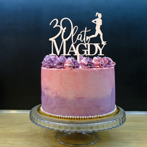 Topper na tort urodzinowy - Biegacz biegaczka bieg run runner bieganie - wersja dla kobiety dziewczyny - biegnąca dziewczyna - z dowolnym imieniem i liczbą