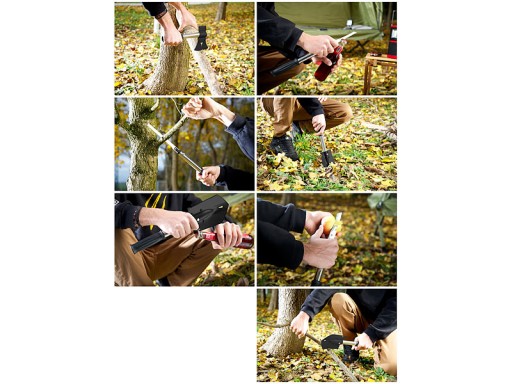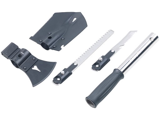 - funkcje: łopata, nóż, piła, siekiera, otwieracz do butelek i usuwanie gwoździ
