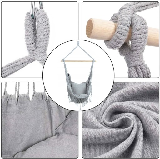 Podwieszany hamak brazylijski to mały bujak, w którym można uciąć sobie drzemkę lub zanurzyć w lekturze ulubionej książki. Siedzisko możesz zawiesić w dowolnym pokoju w domu, gdzie stanie się designerskim wykończeniem salonu, sypialni, a nawet dziecięcego pokoju.
