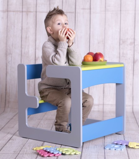 Przystosowane m.in. do spożywania przez dziecko posiłków, wymusza zachowanie odpowiedniej pozycji siedzącej.