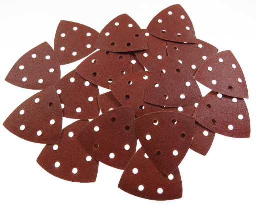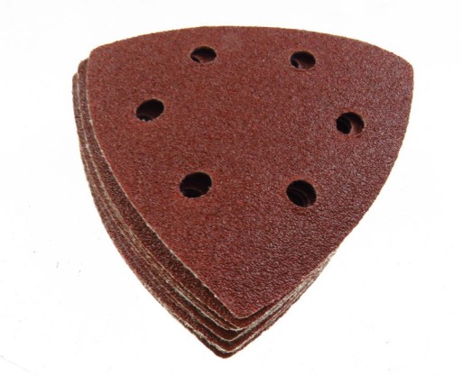 Papier przeznaczony do współpracy ze szlifierkami oscylacyjnymi lub renowatorami (szlifierkami wielofunkcyjnymi). Nasyp korundowy przeznaczony do uniwersalnej obróbki m.in. drewna i materiałów drewnopochodnych, metali, usuwania starych powłok malarskich itp.. Każdy arkusz posiada rzep do szybkiej wymiany zużytego papieru. Papier wyposażony w otwory do szlifierek z system odpylającym - 6 otworów.