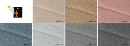 DIMOUT - sztywna tkanina zaciemniająca w 80% o wyrazistej strukturze. Tył tkaniny gładki, jednokolorowy.