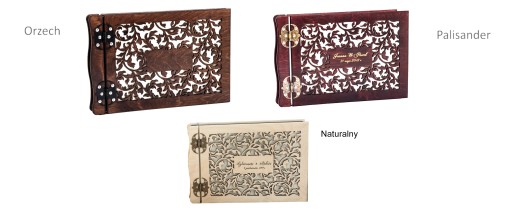 Wykorzystujemy TRZY kolory bejc: orzech, palisander, biały. Ciemne odcienie idealnie podkreślają kolor grawera. Na pozostałych aukcjach znajdziesz inne kolory okładki: biały, czarny lub naturalny.