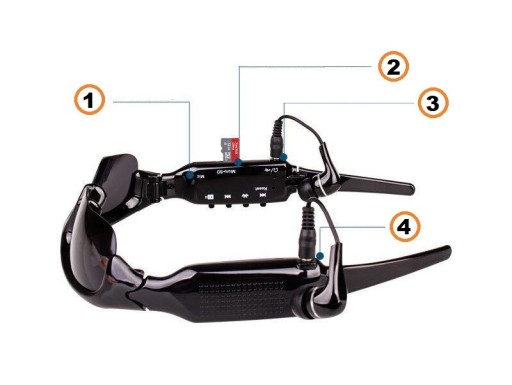 Mała i dyskretna kamera ukryta w profesjonalnie wykonanych sportowych okularach przeciwsłonecznych, z możliwością słuchania muzyki i nagrywania w jakości FULL HD