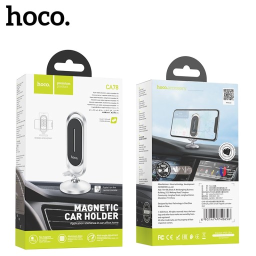 hoco CA78 Karly to uchwyt magnetyczny do telefonu lub tabletu o wielkości wyświetlacza od 4.7 do 6.5 cala oraz wadze do 1 kg, przeznaczony do montażu na desce rozdzielczej pojazdu.