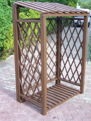 (wymiary w podstawie) x 170/188 (wysokość w niższym i w wyższym punkcie)Solidna drewutnia na drewno kominkowe- bardzo stabilna konstrukcja, Drewutnia ogrodowa przeznaczona na suszenie drewna kominkowego, wykonana jest z drewna sosnowego.