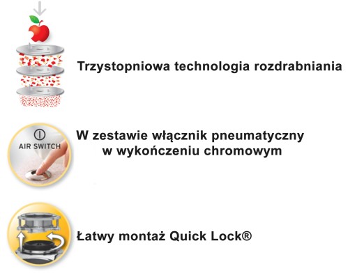 Wyprodukowany w USA. Przeznaczony dla dużych, aktywnych rodzin. POSIADA WŁĄCZNIK PNEUMATYCZNY. Rozdrabniacz kuchenny poprawia higienę kuchni poprzez eliminację przykrych zapachów związanych z rozkładem resztek żywnościowych, ponad to zmniejsza ilość wynoszonych śmieci nawet do 40%,a tym samym zmniejsza zapotrzebowanie na środki czystości stosowane w kuchni. Młynek do odpadów jest przyjazny dla środowiska, łatwy w instalacji i tani w eksploatacji.