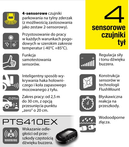 Sensory dostępne są kolorze czarny mat, nadają się idealnie do malowania pod kolor nadwozia. W zestawie dla ułatwienia malowania znajduje się specjalna osłonka na czujniki.