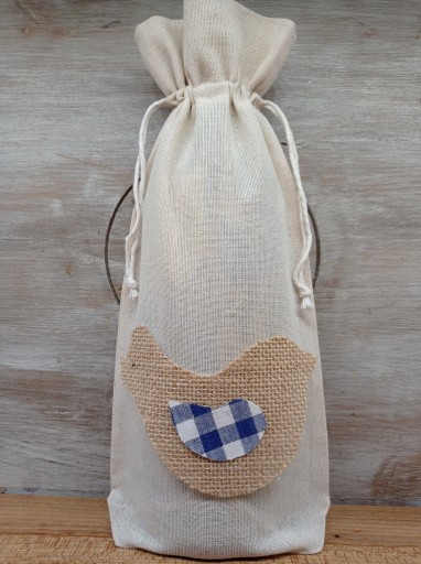 bawełniana prosta i elegancka torebka na wino (1L) z jutowymi aplikacjami nawiązującymi do wielkanocy i nie tylko ...