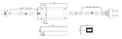 - Długość przewodu : wejście - 1000 cm , wyjście 1500 cm