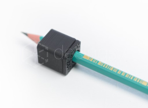 Dodatkowo geometria niepełnego otworu mocno zaciska ołówek firmy BIC, przez co nie wypada podczas pracy.