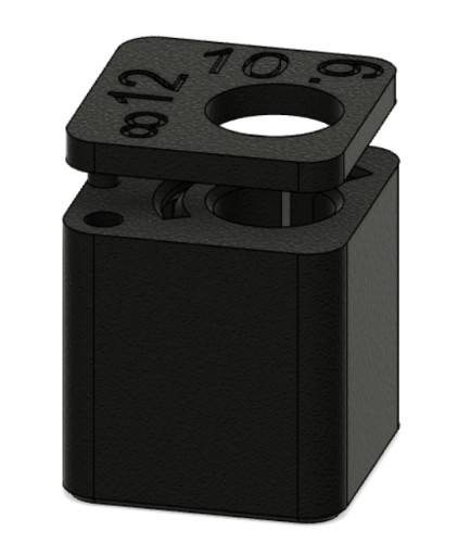 Drukowana kostka z uchwytem do ołówka do trasowania linii w czterech różnych odległościach: