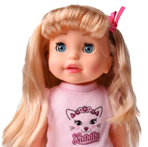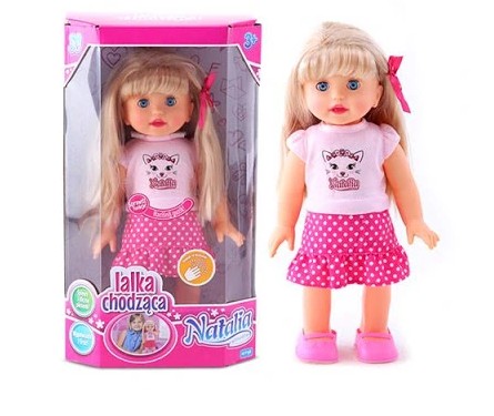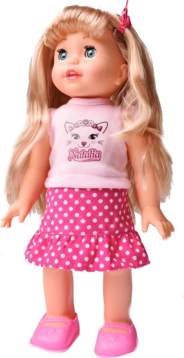 Urocza lalka Natalia potrafi samodzielnie stać i chodzić oraz wypowiedzieć 7 fraz. Po klaśnięciu w dłonie laleczka zacznie chodzić. Po naciśnięciu na brzuszek zacznie mówić i śpiewać, zna aż 3 piosenki! Położona laleczka również zamyka oczy.