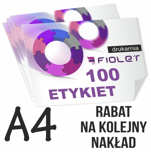 - produkt: ETYKIETY SAMOPRZYLPNE A4 Z TWOIM INDYWIDUALNYM NADRUKIEM W KOLORZE - 100 SZTUK