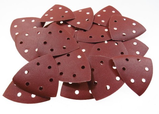 Papier przeznaczony do współpracy ze szlifierkami oscylacyjnymi lub renowatorami (szlifierkami wielofunkcyjnymi). Nasyp korundowy przeznaczony do uniwersalnej obróbki m.in. drewna i materiałów drewnopochodnych, metali, usuwania starych powłok malarskich itp.. Każdy arkusz posiada rzep do szybkiej wymiany zużytego papieru. Papier wyposażony w otwory do szlifierek z system odpylającym - 6 otworów.