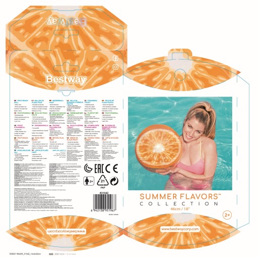 Dmuchana piłka plażowa marki Bestway o średnicy 46 cm. Cała rodzina będzie bawić się nią godzinami!