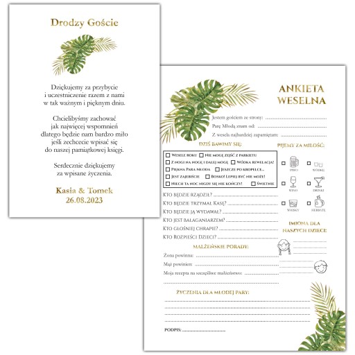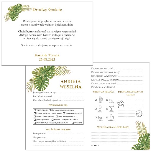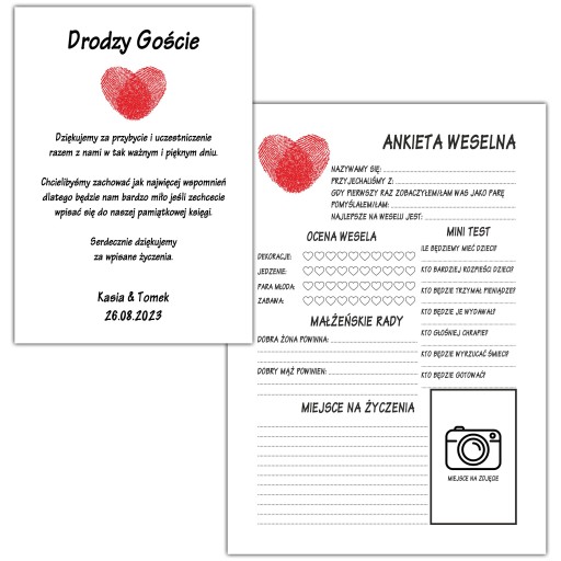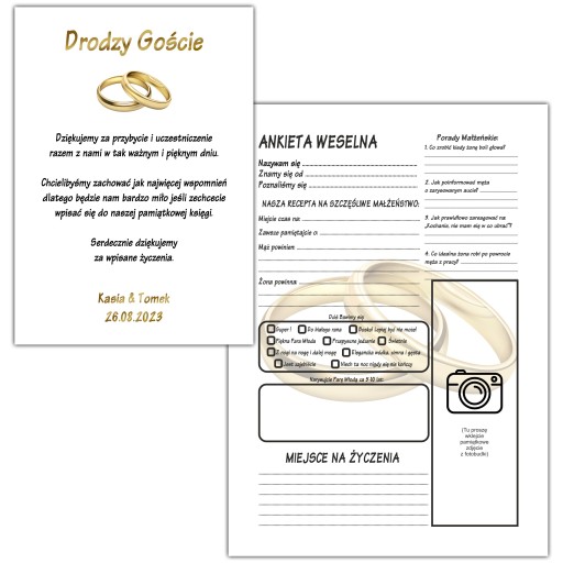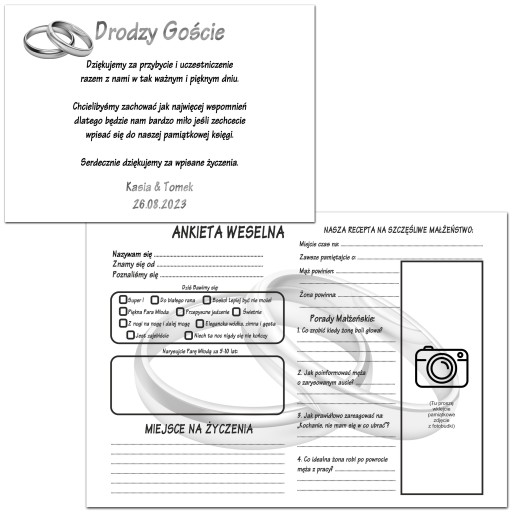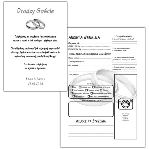 Oferta skierowana dla osób, które kupią u nas księgę gości i chcą wewnątrz księgi mieć ankietę weselną.