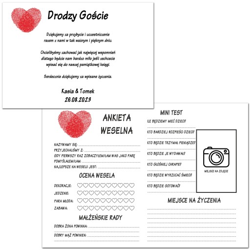 * układ ankiety (poziomy bądź pionowy) dostosowany będzie do rodzaju zakupionej u nas księgi gości