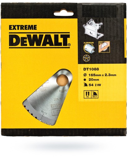 Piła tarczowa do pilarek zagłębiarek, tarcza do piły, pilarki do drewna serii EXTREME 165 mm x 20mm 54 zęby 165x20 mm DeWalt DT1088 do bardzo precyzyjnych cięć i do aluminium.