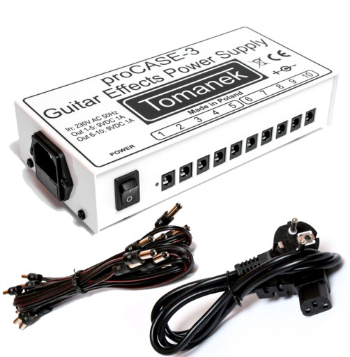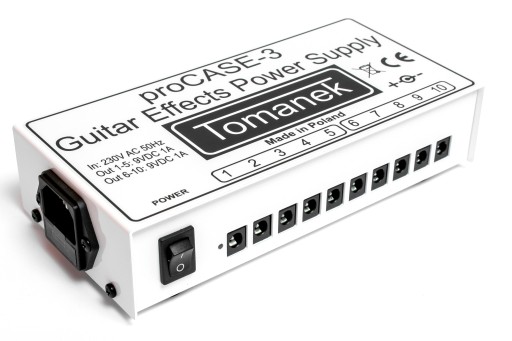 Zasilacz do efektów gitarowych Tomanek ProCASE-3 z serii Pro, wyróżnia się na tle poprzedników grubą, stalową obudową oraz dwiema odseparowanymi sekcjami ze zwiększoną obciążalnością do 1A na sekcję.