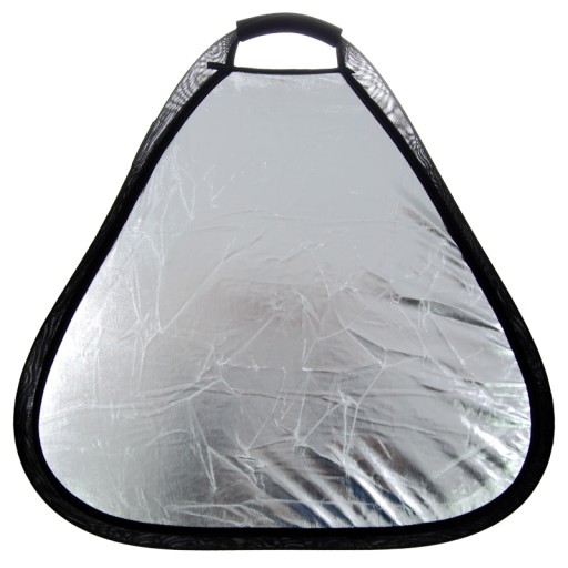 Niezwykle przydatny zestaw 4w1 w skład którego wchodzi blenda trójkątna w kolorze srebrnym oraz z drugiej strony, 3 powierzchnie (szara, czarna, biała) do ustawiana balansu bieli i ekspozycji.