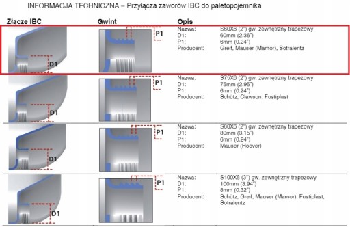 ✔️Gwint wewnętrzny nakrętki pod IBC: S60x6