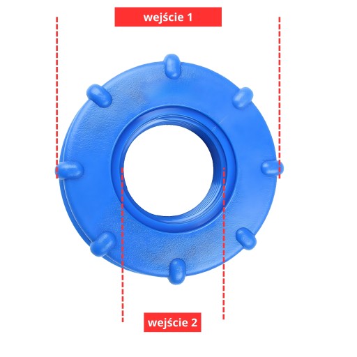 Wejście 1: Gwint wewnętrzny trapezowy niesymetryczny "gróby" S60x6 - 2" (gwint spotykany np. w paleto-pojemnikach, zbiornikach 1000L, IBC)