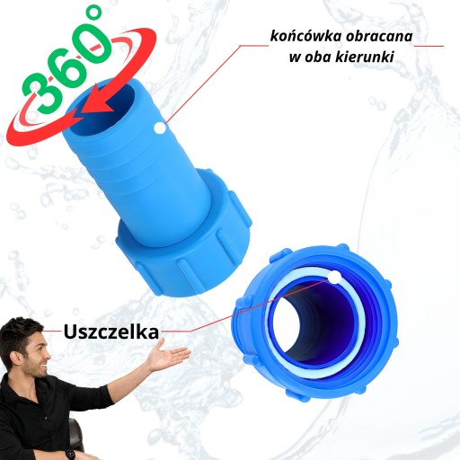Uszczelka, która jest w nakrętce złącza zapewnia doskonałą szczelność, a praktyczny wtyk na wąż ułatwia obsługę.