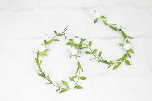 Girlanda kwiatowa z różą na grzebyku dodatkowa ozdoba do wpięcia w wianek komunijny.