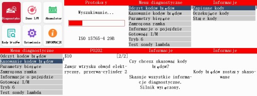 Zrzuty z ekranu MENU Skanera Diagnostycznego.
