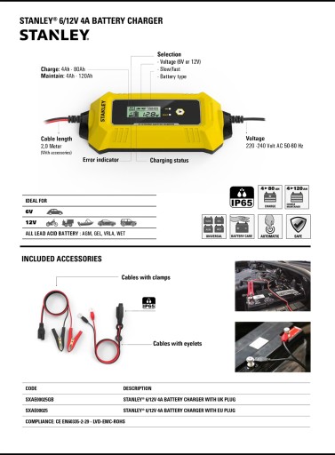 ✅Stanley to zaawansowana, w pełni automatyczna ładowarka o mocy 6 lub 12V i prądzie 4A. Dzięki swoim automatycznym funkcjom, ładowarka ta jest wyjątkowo łatwa w obsłudze i nie wymaga zaawansowanego doświadczenia.
